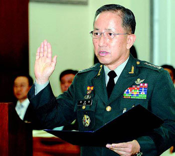 下任国防部长官提名人金泰荣18日正在國會國防委員會舉行的人事听证会上宣誓。