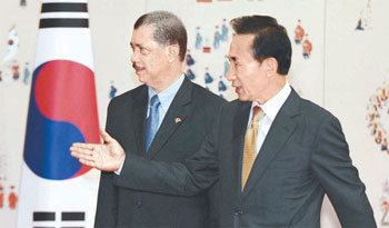 14日上午,李明博總統在青瓦台會見了非洲“小國”塞舌耳共和國(Republic of Seychelles)的詹姆斯•阿裡克斯•蜜雪兒總統。