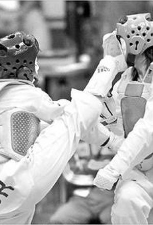 임수정(왼쪽)이 19일 덴마크 코펜하겐에서 열린 세계선수권대회 여자 라이트급 결승에서 오른발차기로 장화(중국)의 얼굴을 강타하고 있다. 지난해 베이징 올림픽 금메달리스트 임수정은 10-8로 역전승을 거뒀다. 이번 대회에서 남자 대표팀은 금 3개, 은메달 1개로 19회 연속 종합우승을 차지했다. 여자 대표팀은 금메달을 2개 땄지만 중국에 밀려 2위에 그쳤다.