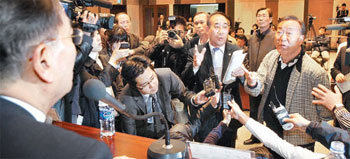 19日,崇南燕岐郡居民們在首爾中區太平路的韓國傳媒中心舉行的韓國行政學會主辦的行政中心複合城市(世宗市)國政論壇中,抗議員警阻擋燕岐郡居民的出入。1000名居民對主辦方強烈抗議說:“如果不讓全體居民旁聽,就不能舉辦論壇。”這使活動延遲了將近50分鐘。
