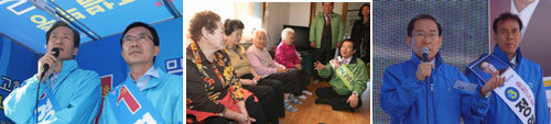 國會議員再選補選只剩下8天的20日,執政黨和在野黨領導部正為黨所屬候選人的支援遊說而竭盡全力。左起是大國家黨代表鄭夢准、民主黨代表鄭世鈞、自由先進党總裁李會昌。