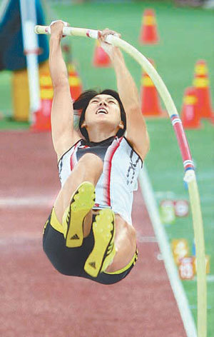 22日,韓國撐杆跳高界的兩位旗幟性人物——任恩智(音•20歲•釜山蓮堤區廳)和崔允姬(音•23歲•圓光大學),於賽前1小時便開始在大田Hanbat綜合體育場的撐竿跳高場地進行賽前熱身。周圍觀眾的目光聚集在兩位“美女飛人”的對決上。