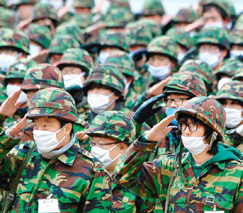 隨著甲型H1N1流感病毒日益擴散,國防部從5日起暫時中斷後備軍訓練和現役士兵的休假。4日下午在首爾瑞草區內穀洞“江南瑞草後備軍訓練場”,結束訓練的後備軍正戴著口罩申請退伍。