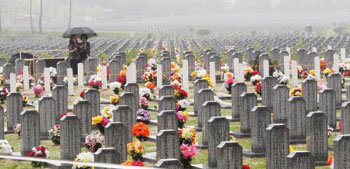 7月3日,於3月26日在西海白翎島附近海域發生的“天安號爆沉事件”迎來了第100天。2日,中士林宰葉的母親在國力大田顯忠院“天安號46勇士”墳前,為兒子閱讀聖經。