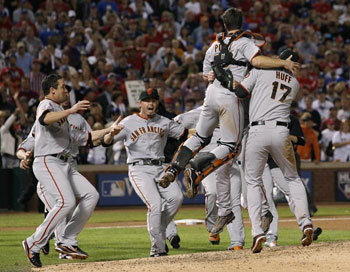 在以3比1領先的第9局2出局,救援投手Brian Wilson讓德州巡遊者隊的克魯茲三振出局後,三藩市巨人棒球隊的選手們跑到比賽場享受著獲勝的喜悅。三藩市巨人棒球隊時隔56年後取得美國職業棒球大聯盟(MLB)世界系列賽冠軍。