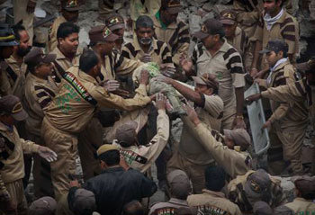 15日,位於印度新德里東部的五層公寓崩潰,至少有60餘人身亡、80餘人身受重傷。當局認為,是上一個雨季的濕氣腐蝕公寓地基,進而導致這場事故。16日,救助隊員從這一建築物的混凝土殘骸中抬出了一名小孩。
