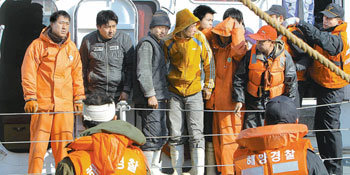 3日,在忠清南道泰安半島以西55公里處的格列飛列島西南海岸上,非法捕魚的中國船員被捕。船員們被海警控制著坐四日下午的船,在泰安半島近興面新珍島港停靠。