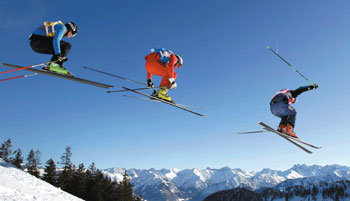 16일 독일 그라스게렌에서 열린 스키크로스 유러피안컵에 참가한 선수들이 가파른 언덕을 박차고 허공을 가로지르며 질주하고 있다. 스키크로스는 프리스타일 스키의 일종으로 보통 4, 5명이 한 조로 함께 출발하며 기록으로 전체 출전 선수 중에서 순위를 가리는 경기다. 2010년 밴쿠버 겨울올림픽에서 정식종목으로 채택됐다.