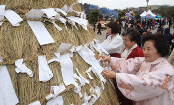 元宵節的前一天5日,在光州民俗博物館舉辦一場迎元宵活動。參加活動的市民們把自己的心願掛到月亮屋上。