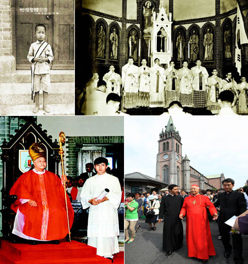 □1.1939年,8歲時第一次領聖體後拍照留念□2.1961年聖職授任後,第一次參與傳遞天主賜予的恩賜的精神神父(中間)□3.1998年在天主教首爾大學球場就坐的鄭樞機主教□4.2012年6月15日,在明洞大禮堂接受洗禮後,鄭樞機主教與同伴神父、信徒在一起。