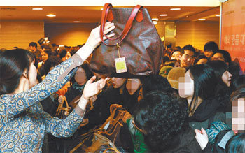 22日,首爾中區小公洞樂天百貨商場總店舉行的“海外品牌大戰”被顧客圍得水泄不通。該活動將持續到24日,艾特羅 (ETRO) 、阿瑪尼精選(Armani Collezioni)、巴厘 (Bally) 等諸多品牌應邀參加。