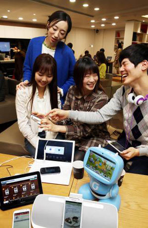 KT將首爾光化門“KT奧列廣場”1樓重裝成普通人體驗最新智慧型機器的空間,3日重新開門迎客。2層是為企業顧客的會議室空間。