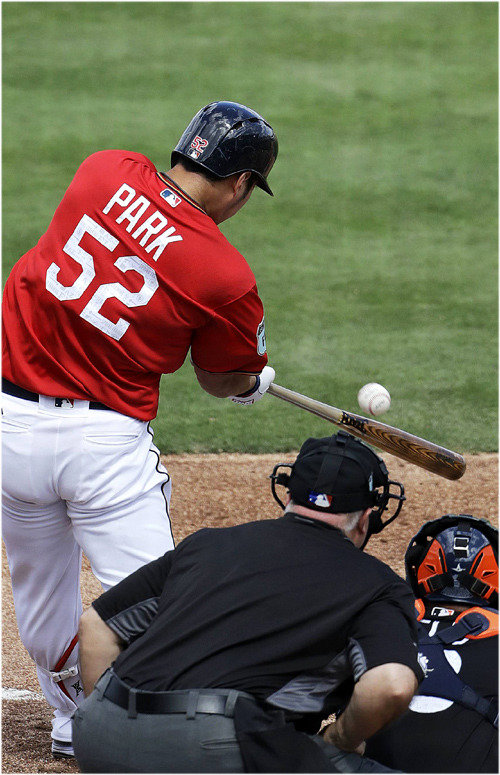 當地時間28日,樸炳鎬在美國佛羅裏達州麥爾茲堡捷藍公園體育場舉行的與邁阿密隊的美國職棒大聯盟熱身賽上,在第一局末在第一個擊球位上面對對方首發投手胡塞•烏雷納(26歲)投出的時速達96英裏(約154公裏)的快球,擊出了越過左側圍牆的兩分本壘打。