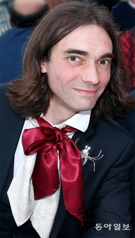 上個月,非常意外地與他相遇,是在巴黎的一美術館裏。他一直為在巴黎卡爾提安排一次現代美術基金會的學術會而忙碌。上個月,他作為與汽車攝影展相關的“速度之夜”研討會的主持人,與音樂家、天文學家、哲學家等另類專家們就速度進行了討論。而當時距離他當上國會議員僅僅三天。目前在首爾市立美術館舉行的該基金會的藏品展覽中,也有他解答數學問題的手的短視頻。