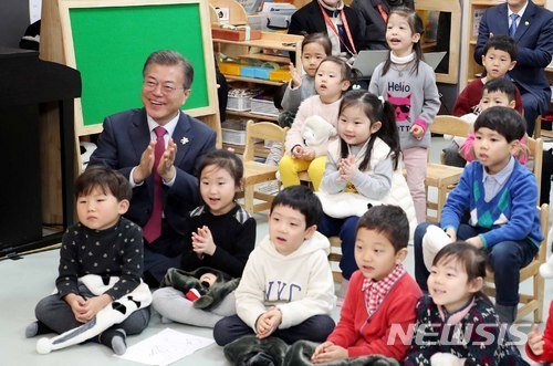 文在寅總統24日表示,“目前上國立和公立幼稚園、兒童之家的兒童比例為10.3%,任期內將把這一比例提高到40%。”