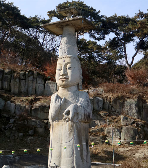 文物廳13日宣佈,就第218號寶物“論山灌燭寺石造彌勒菩薩立像”被指定為國寶進行預告。位於忠清南道論山市恩津面的彌勒菩薩立像,又名“恩津彌勒”的這一佛像,高18.12米,是國內最大的規模。慶州石窟庵的本尊佛連同底座高度只有5米,恩津彌勒的高度是它的3倍還多。據傳,在高麗王朝第四代國王光宗在位期間的968年,在高麗王室的援助下,雕刻匠僧人惠明製作了該佛。