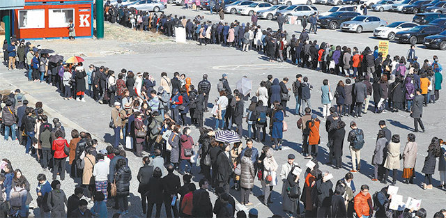 18日,在首尔瑞草区良才洞开門的“DH XI開浦”(开浦住宅公社第8园区重建專案)公寓样品房前,从上午9点起,1000多名參觀者排起了长队。仅当天一天,就來了15000名左右预备申請者。來自首尔市松坡区蚕室洞的主妇朴振英(44岁,女,音譯,下同)说,“聽了‘樂透出售’的话,我等了4个小时才進去。”
