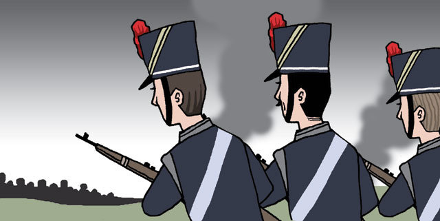 再次回到17世紀,看著穿過炮彈前進的戰列步兵,又有將軍感到新的恐懼。曾是拿破侖天才參謀的安托萬·亨利·約米尼預感到,如果大炮進壹步發展,就會把將步兵隊形撕個粉碎。他在自己的著作中多次強調,需要壹個禁止使用大炮的國際條約。
