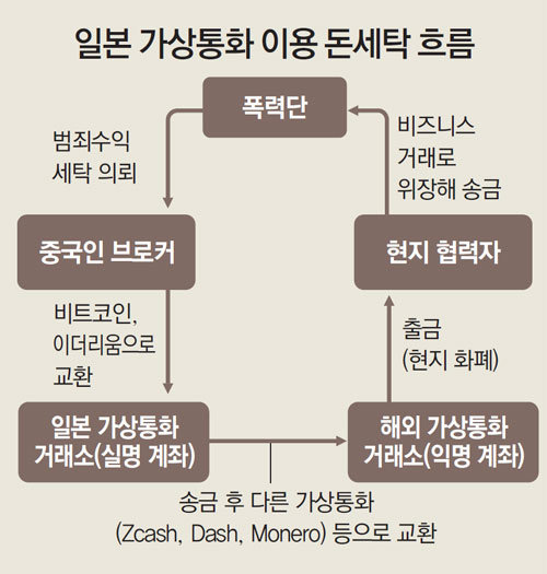 據該報報道,該黑幫組織通過“金庫組”的下級組織,委托中國的中間人洗錢。中間人為日本的“實行組”在虛擬貨幣交易處設立多個賬戶,並指示將現金(日元)兌換成虛擬貨幣或以太幣。日本需要經過本人確認才能開設賬戶,所以“實行組”主要由日本人組成。