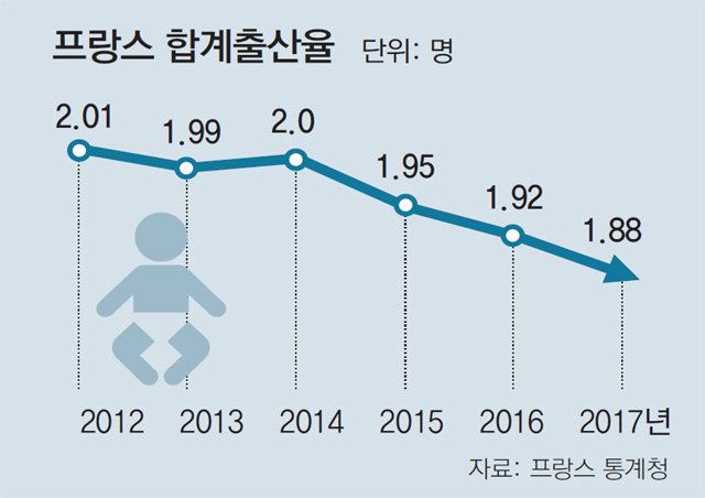 1996年,法國生育率只有1.6人,但自從進入2000年以來,生育率大幅提高,其主要原因是法國社會出現了自然接受無需結婚也能生孩子的現象的氛圍,以及政府對生育和撫育給予了全方位的支援。實際上,在1999年,政府出臺同居合約(PACS)制度,不管是否結婚都承認成年人之間的同居關系,並允許這些家庭也能享受生育和撫育孩子的支援,從而導致了生育率的提高。使用PACS的情侶從2000年的2.2萬人增至去年的19.2萬人。但是最近,連這壹方面也處於停滯狀態。