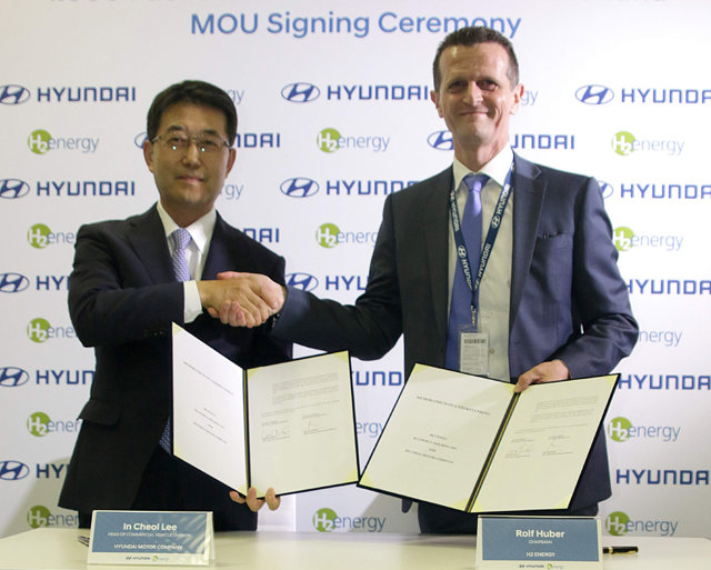 現代汽車將從明年開始在5年內向歐洲市場供應1000輛氫電重型卡車。19日(當地時間),現代汽車在德國漢諾威舉行的國際商用汽車博覽會上,與瑞士的氫能源企業“H2能源(H2E)”簽署了有關“氫電重型卡車供貨合同”的諒解備忘錄(MOU)。現代汽車和H2E爲了在瑞士等歐洲地區擴大普及氫電卡車,決定進一步鞏固共同努力的戰略合作夥伴關系。現代汽車提供的氫電重型卡車分爲冷藏卡車和普通卡車。以現有的重型卡車“Xcient”爲基礎,正在配合歐洲當地法規進行開發。