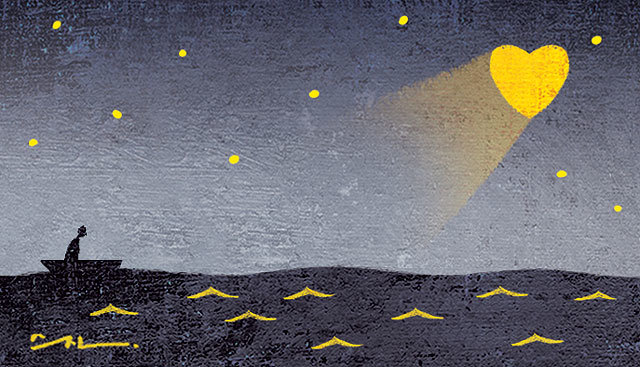 作品中蘊含著世上難見的美麗情景。有人覺得詩人吟詠的是不存在的東西,但這是詩人所見所感的祖國。我們民族的胸膛中,就蘊藏著那樣的日子和風光。洛東江上的晴空,沒有人也會充滿月光。碧藍的月光和金色的晚霞如祝福般降臨,依心而在,沒有缺憾。雖是熟識,但越看越覺新穎,這就是這塊土地上的山河,人們和房屋都很親切。