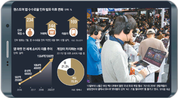 三星與ONE Store于今年7月簽訂了內容爲,如果遊戲開發公司往ONE Store上傳應用程序,該應用程序也會同時上傳到Galaxy App Store的同盟合同。當時ONE Store把應用程序市場的手續費從銷售額的30%下調到了5∼20%。當天,三星電子和ONE Store的所謂的“脫谷歌”活動,吸引了國內外遊戲業界負責人400人參加,引來了高度關注。