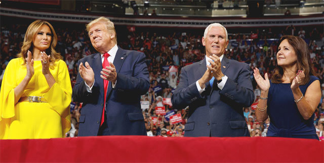 美國總統特朗普18日(當地時間)晚8時在美國南部佛羅裏達州奧蘭多市的安利中心正式宣布參加連任競選。2萬個座位座無虛席的支持者們的吶喊聲和熱情仿佛要讓活動現場沸騰起來。穿著印有2016年大選口號“讓美國再次偉大(Make America Great Again)”的紅色帽子和紅色T恤的支持者,對特朗普的每壹句話都報以雷鳴般的掌聲和歡呼。令人感受到,特朗普不再是4年前在紐約曼哈頓在200名記者面前宣布參加競選的房地產財閥,而是世界最強國現任總統所具有的力量和權威。