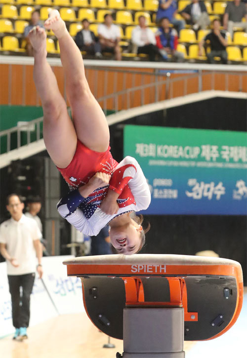 19日,在濟州漢拿體育館舉行的韓國杯濟州國際體操大賽女子跳馬項目比賽上,呂瑞貞以兩次跳躍平均分14.817分獲得了冠軍。