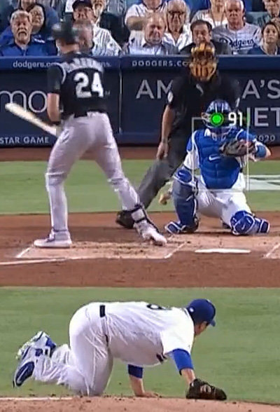 5日,在美國洛杉磯道奇體育場舉行了洛杉磯道奇隊與科羅拉多隊的比賽。道奇隊先發投手柳賢振(32歲)在第2局向對方首發擊球手雷恩•麥克馬恩投出第9個球後,失去了身體重心,向前倒下。觀看比賽的MBC解說員金炳賢(音)擔心地說:“身體平衡似乎崩潰了。”雖然柳賢振斷然拒絕說“只是踩錯了地而已”,但場面讓人懷疑他的體力下降。
