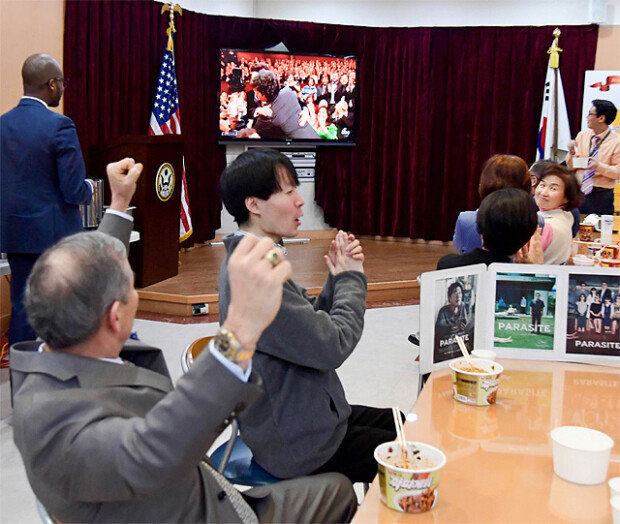 10日,《寄生蟲》獲得奧斯卡最佳原創劇本獎後,美國駐韓國大使哈裏•哈裏斯在推特上留言祝賀,“與大使館同事一起吃‘炸醬烏冬面’,享受奧斯卡頒獎典禮觀看派對”,並上傳了杯裝方便面等照片,引起了關註。