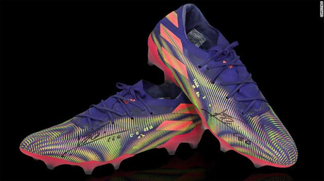中標的梅西的足球鞋是阿迪達斯旗下產品,屬於“Nemeziz Messi 19.1”系列。球鞋上刻有梅西的簽名和他的妻子和兩個子女的名字。