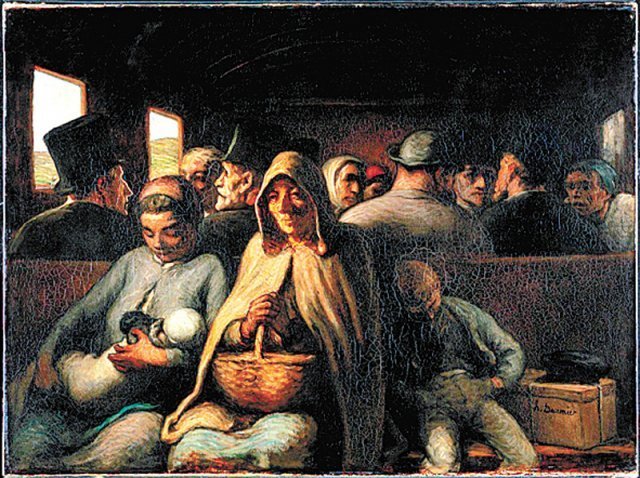 如果說曹世熙將矮人象征為城市貧民,那麽多米埃則將列車描繪為階級不平等的象征。惡劣的三等車廂是比喻窮人生活的地獄般的世界。畫中的家人能夢到天堂嗎?男孩長大後能坐頭等車廂嗎?我們社會的不平等比那時好嗎?很難做出肯定的回答。