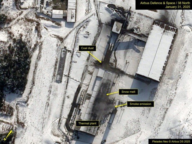 1月30日和31日拍攝的照片顯示,寧邊核設施的其他建築上覆蓋著積雪,而位於放射化學實驗室南側的火力發電廠屋頂上,從積雪融化的地方冒出煙氣。核設施火力發電廠冒煙,通常被認為是再處理核廢料和提取鈾的跡象。發電廠建築與碎煤廠之間,還觀察到了用於火力發電的煤塵。