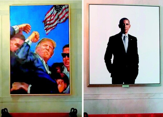 美國總統特朗普摘下掛在白宮大廳的前總統奧巴馬的肖像畫,掛上了描繪自己去年7月在賓夕法尼亞州巴特勒遊說時遭到槍擊後高喊“戰鬥”情景的畫。美聯社等媒體評價說:“美國總統的肖像畫大部分在卸任後都會掛在白宮。在沒有事先預告的情況下,清理前任總統的肖像畫,並在那裏展示現任總統的畫實屬罕見。”