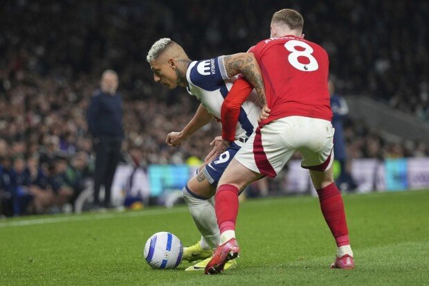 토트넘은 이날 전반 5분 노팅엄에 먼저 골을 내줬다. 노팅엄 엘리엇 앤더슨의 슈팅이 토트넘 로드리고 벤탕쿠르의 몸에 맞고 굴절돼 골문 안으로 들어갔다. 노팅엄은 전반 16분 크리스 우드가 헤더로 추가골을 넣었다. 토트넘은 후반 42분 히샤를리송이 헤더로 추격골을 넣었지만 끝내 한 골 차로 패했다. 토트넘이 노팅엄을 상대로 한 시즌 두 차례 맞대결에서 모두 패한 건 1997년 이후 28년 만이다. 노팅엄은 이날 30%의 낮은 볼 점유율에도 유효 슈팅 3개 중 2개를 득점으로 연결해 토트넘을 무너뜨렸다. 노팅엄은 이날 현재 리그 3위(승점 60)에 자리했다.