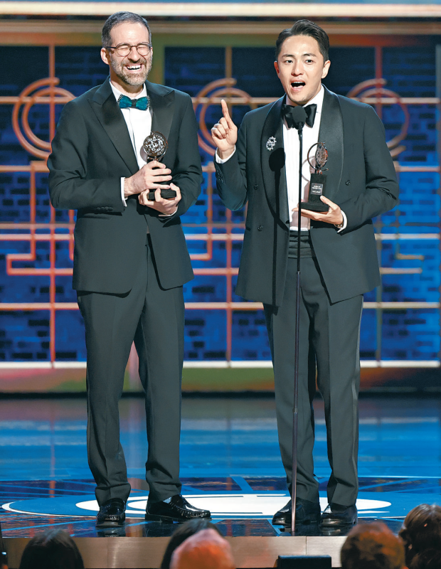 ‘어쩌면 해피엔딩’은 8일(현지 시간) 미 뉴욕 라디오시티 뮤직홀에서 열린 제78회 토니상 시상식에서 총 10개 부문 후보에 올라 △작품상 △연출상 △남우주연상 △각본상 △음악상 △무대디자인상 등 6개 부문을 휩쓸었다. 올해 토니상 최다 수상작이란 영예도 안았다. 각본과 작사를 맡은 박천휴 작가(42)는 한국 국적으로 토니상을 받은 첫 번째 수상자가 됐다.