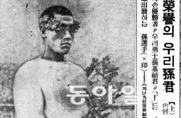 1936年8月,在柏林奧運會馬拉松項目中,孫基禎選手和南升龍選手分別獲得金牌和銅牌。《東亞日報》在當年8月13日的報道中刊登頒獎典禮照片時,刪除了兩位選手胸前的太陽旗,使其顯得模糊。隨後在8月25日的報道中,則刊登了完全刪除孫基禎選手胸前所繪太陽旗的照片。報社最初在原版照片上塗抹顏料以抹除太陽旗,但因痕跡殘留,便使用氰化鉀濃溶液對顯影在銅版上的照片進行了徹底刪除。